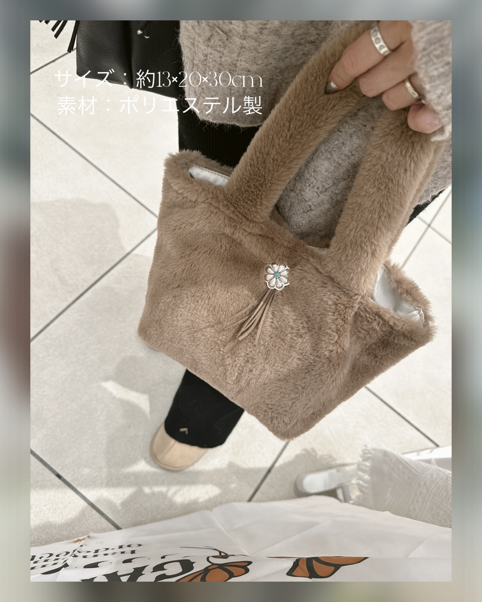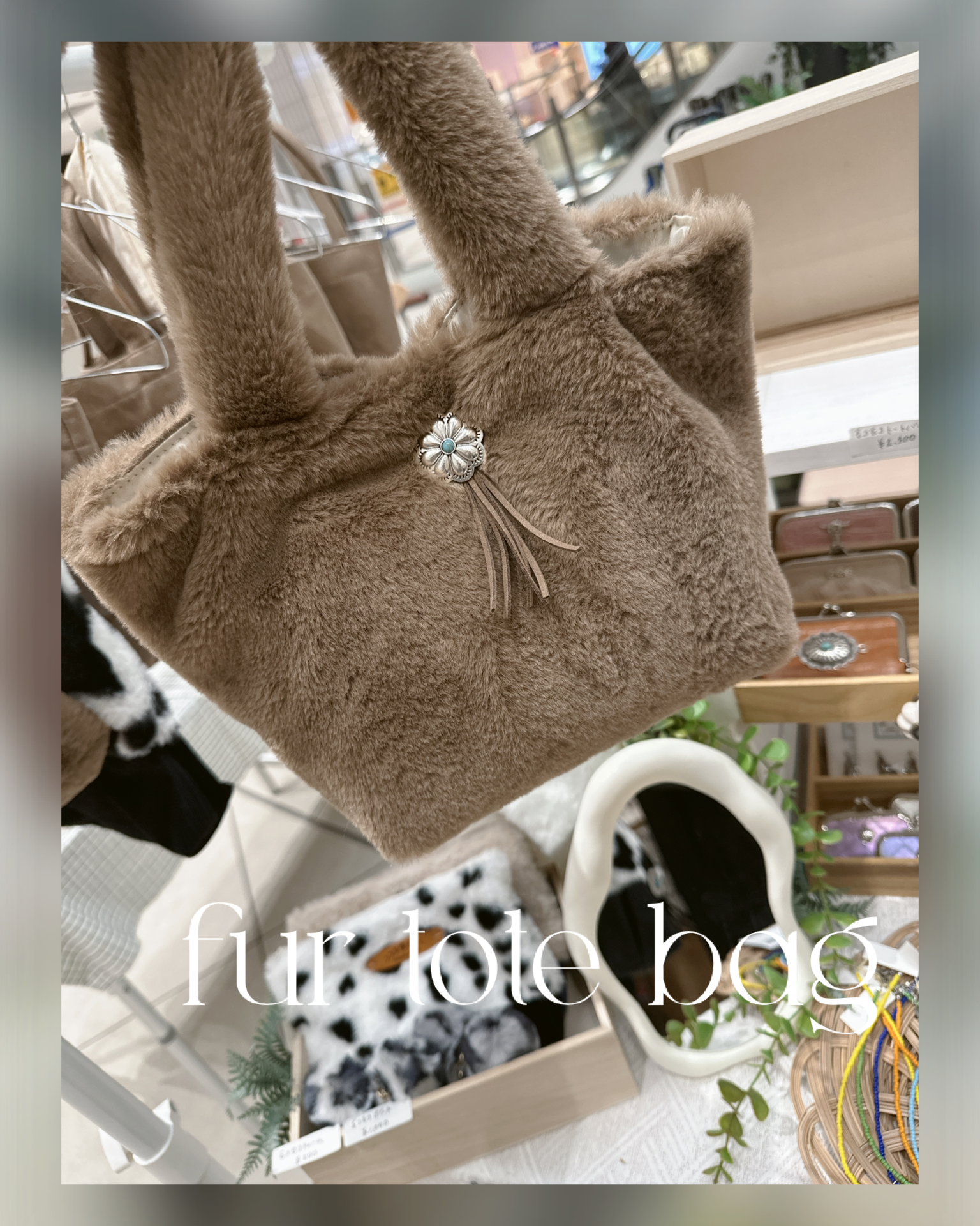 触り心地がふわふわのファーのバックにコンチョボタンを合わせたトートバッグになります♡