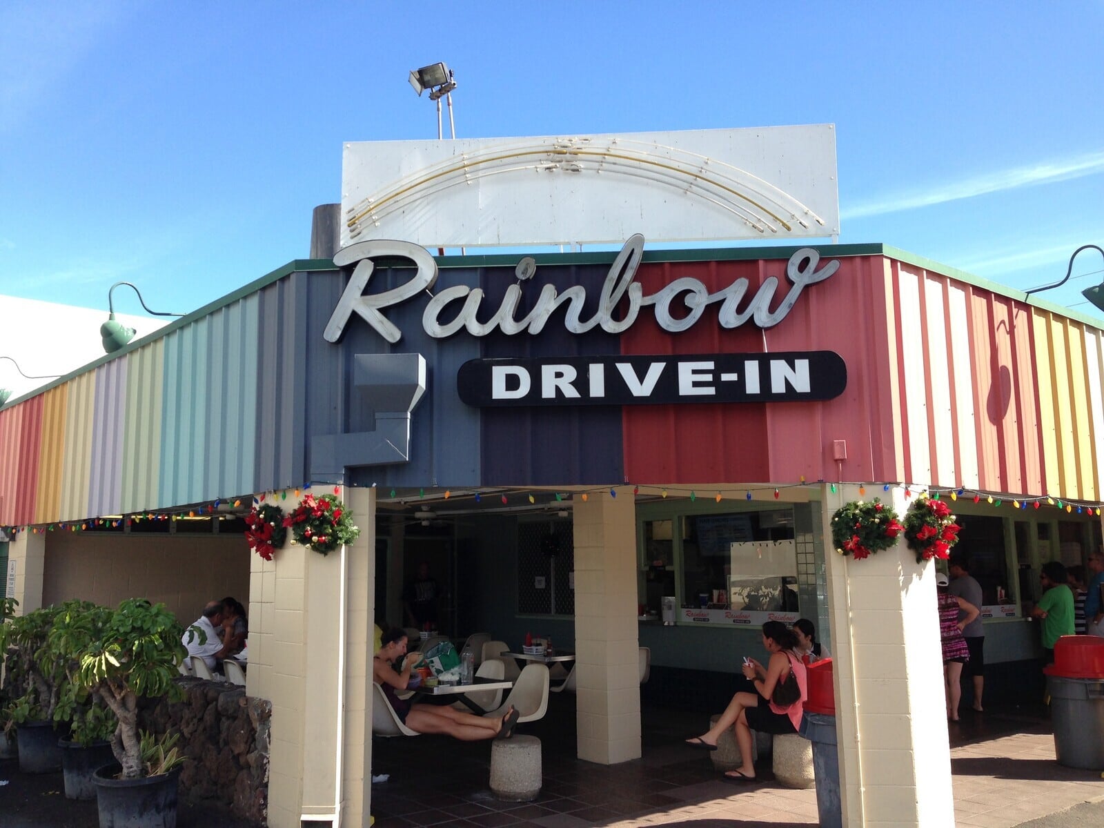 ハワイを代表するプレートランチの名店RAINBOW DRIVE-IN。 ホノルルで一番好きなプレートランチはどこ? と聞けば必ず上位に名前があがる。1961年の創業以来、ローカル&サーファーに絶大なる人気を誇り、いつでもそこには、サーフィン後の空腹のサーファー達とロコの姿。午後9時の閉店まで、オーダー待ちの行列が絶えることはない。